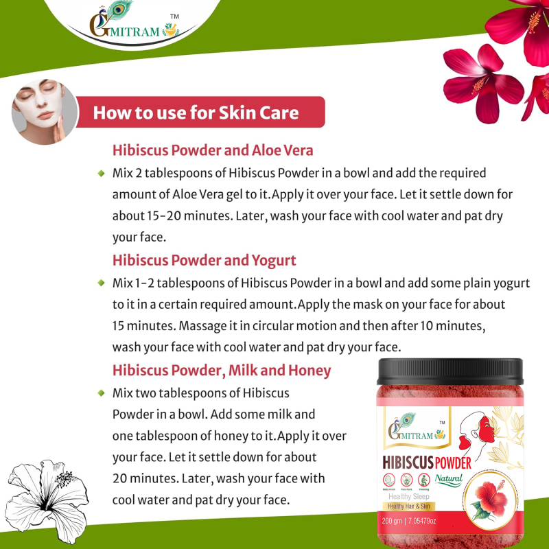 Gmitram Hibiscus Powder is made from handpicked, sun-dried hibiscus petals,